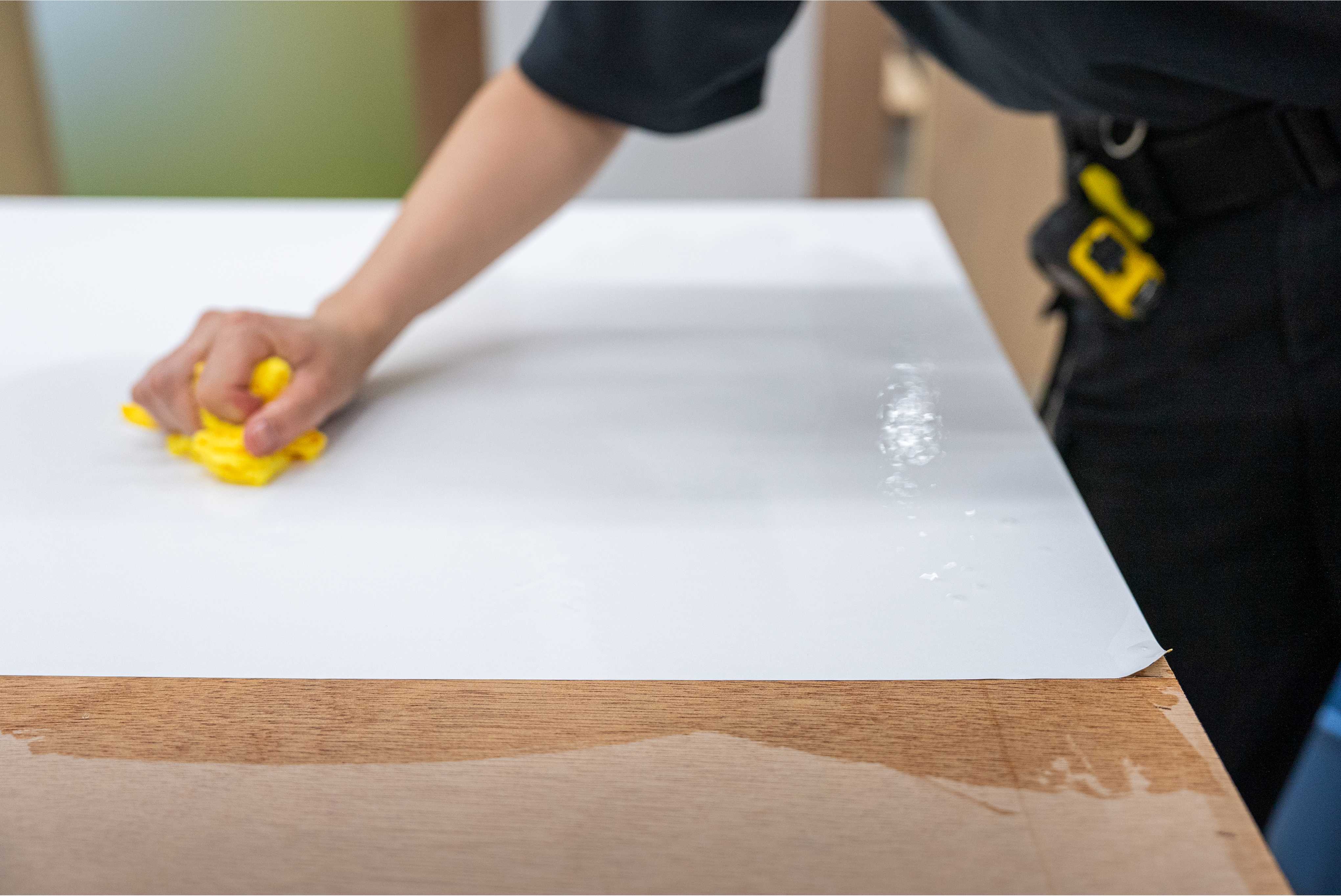 LOOPGLUE(ループグルー)では、水できれいに剥がせて使用後の木工パネルは新品同様の状態となる