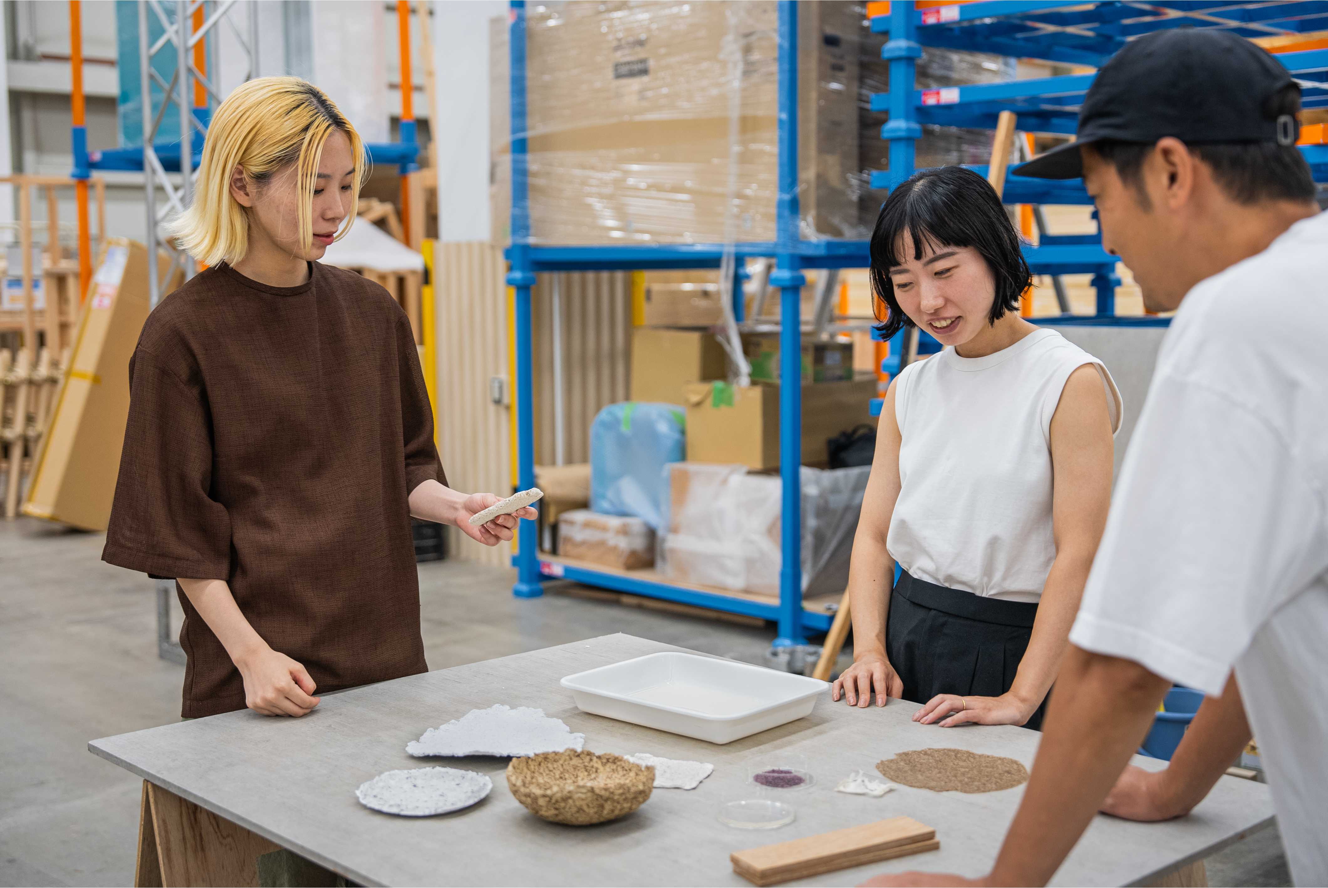 また、多孔質素材同士をLOOPGLUEで接着することで、什器などを分解可能な構造とすることができます。これにより、使用後には素材や部材の単位まで戻して再利用することが可能になります。