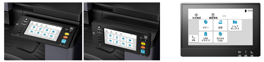 左:7インチタッチパネル (TASKalfa MZ3201i)、右:4.3インチタッチパネル (TASKalfa MZ2502)