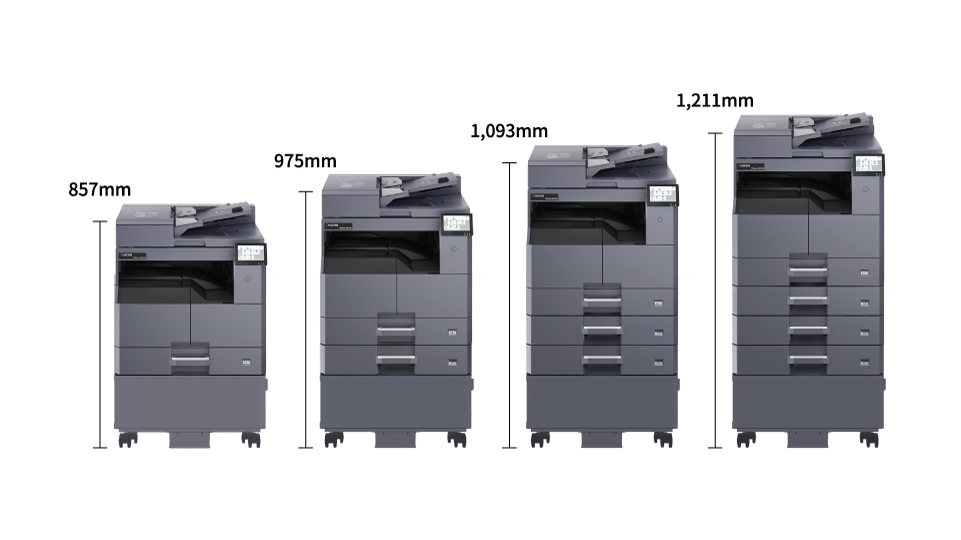 TASKalfa MZ2502は、限られたスペースでも高い生産性を発揮する、コンパクト設計のA3複合機です。卓上設置が可能な省スペース設計に加え、セキュリティ機能の強化により情報保護を徹底します。さらに、業務内容に応じてカセットの段数を選べる柔軟な構成で、多様な用紙サイズや印刷量に対応し、オフィスの効率化を支援します。