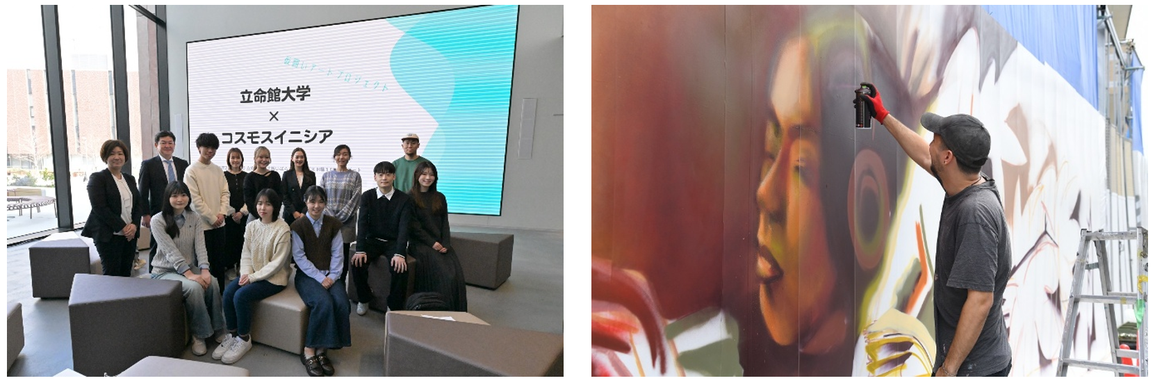 立命館大学でのデザイン案コンペ参加者/ウォールアート制作中写真