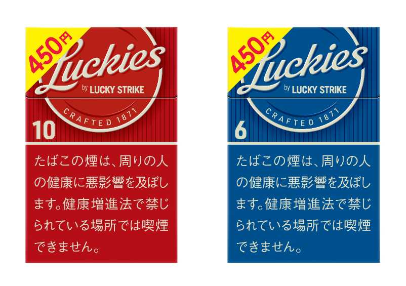 紙巻たばこラッキー・ストライクの新シリーズ「ラッキーズ」から、「ラッキーズ・10・ボックス」「ラッキーズ・6・ボックス」が450円(税込)で登場