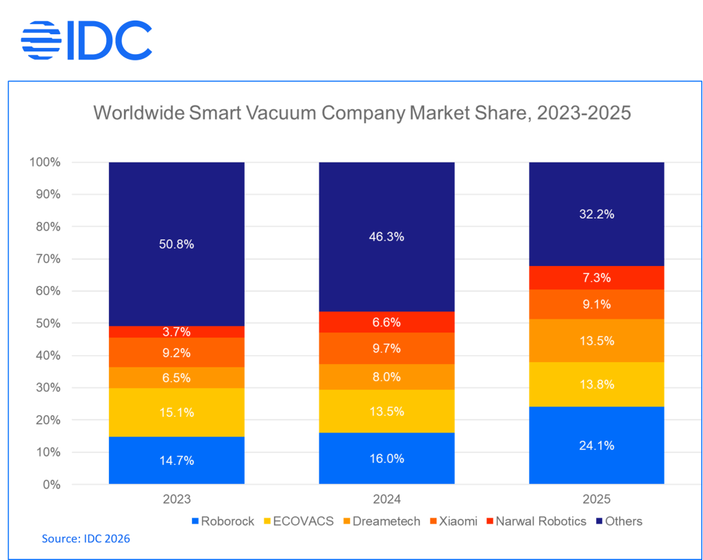 出典:IDC「Worldwide Quarterly Smart Vacuum Robotics Tracker, 2025」ほか(IDC公開資料より)
