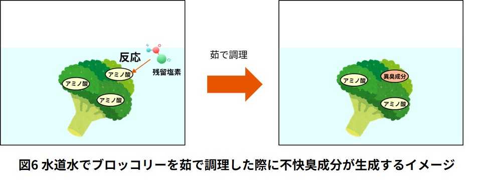 本研究より、残留塩素を除去した浄水でブロッコリーの茹で調理をすると、素材本来の風味を損なう不快臭成分の発生を抑制できることが明らかになりました。