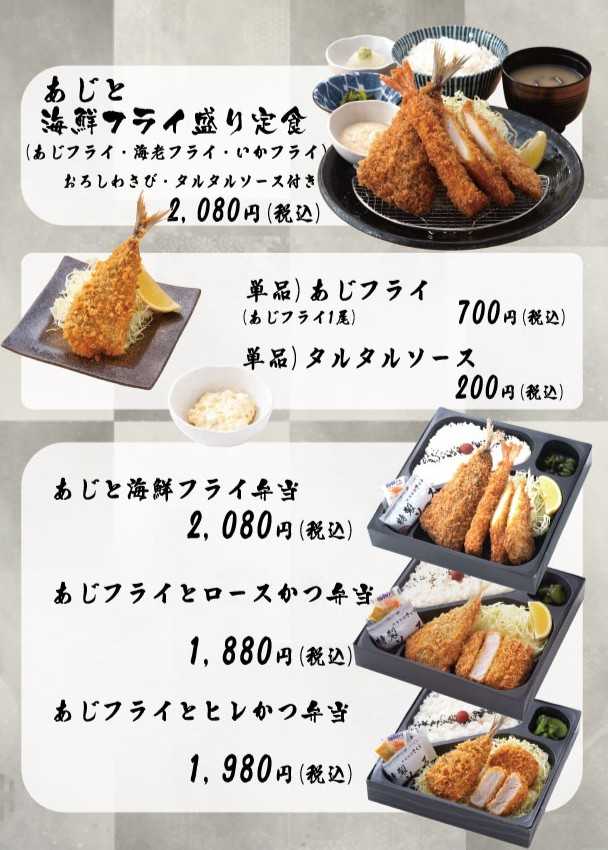 ※左から「あじフライとロースかつ定食」「あじフライとヒレカツ定食」「あじと海鮮フライ定食」
