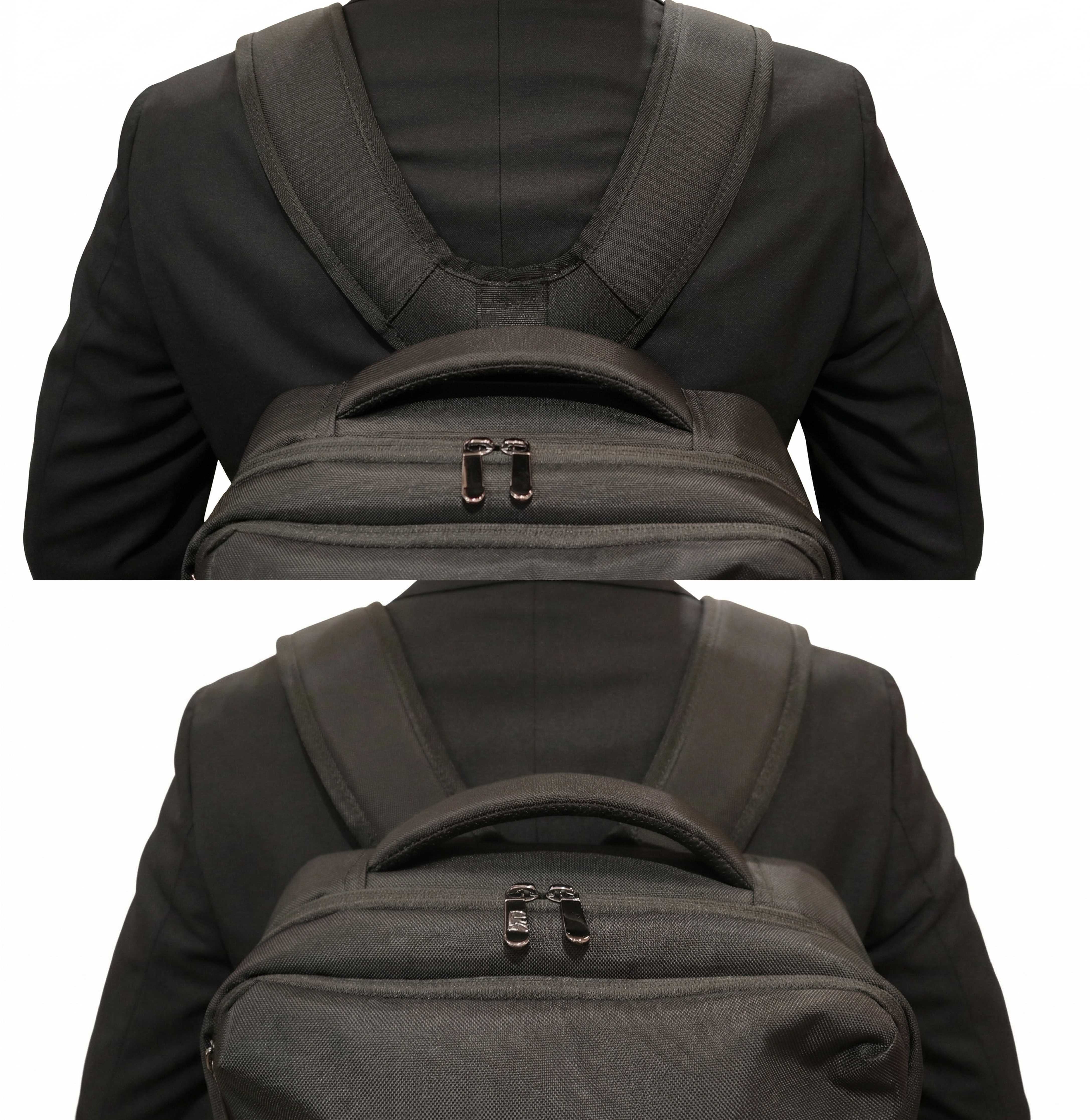 本商品は、自動車のサスペンション構造をヒントに開発したAGS(サスペンション機構)※を背面に搭載しています。歩行時の動きに合わせてリュックが上下に動くことで、肩や腰にかかる瞬間的な荷重を分散し、体感重量を約40%軽減します。さらに、正しい姿勢を維持できる設計にしているため体全体への負担を軽減するなど、PCを持ち歩くビジネスパーソンに最適です。その他、撥水加工を施しており、昨今の予測しにくい急な雨でも安心して使用することができます。
