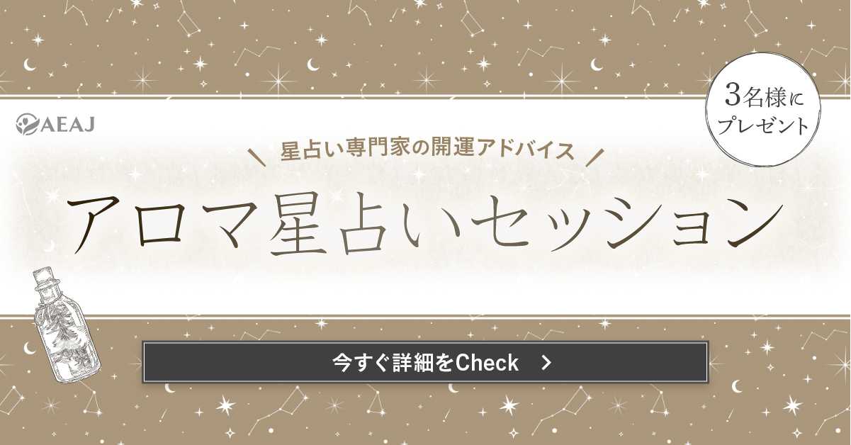 ご参加の際は、各店舗へ事前にお問い合わせください。 ■ フォロー&コメントで当たる「アロマ星占いセッション」プレゼント ![]() AEAJ公式Instagramアカウントのフォローと投稿へのコメントで応募。