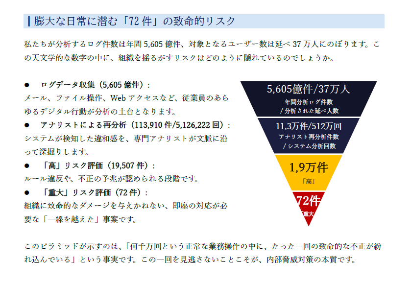 - 年間ログ分析数5,605億件から見えた内部脅威の実態