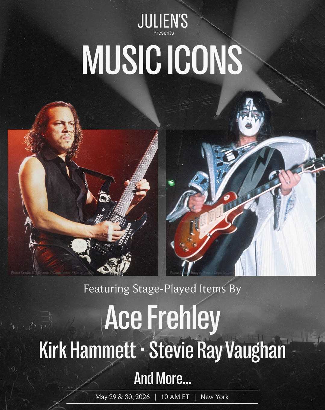 中でも注目は、エース・フレーリー(KISS)が1974年から使用していたGibson Les Paulです。当品は1977年4月に日本武道館で開催、長年保持されていたThe Beatlesの動員記録を塗り替えたKISSの東京初公演を記念して選定されました。ほか、ヘヴィメタルの持つ不朽の影響力を称えた12品が展示されます。