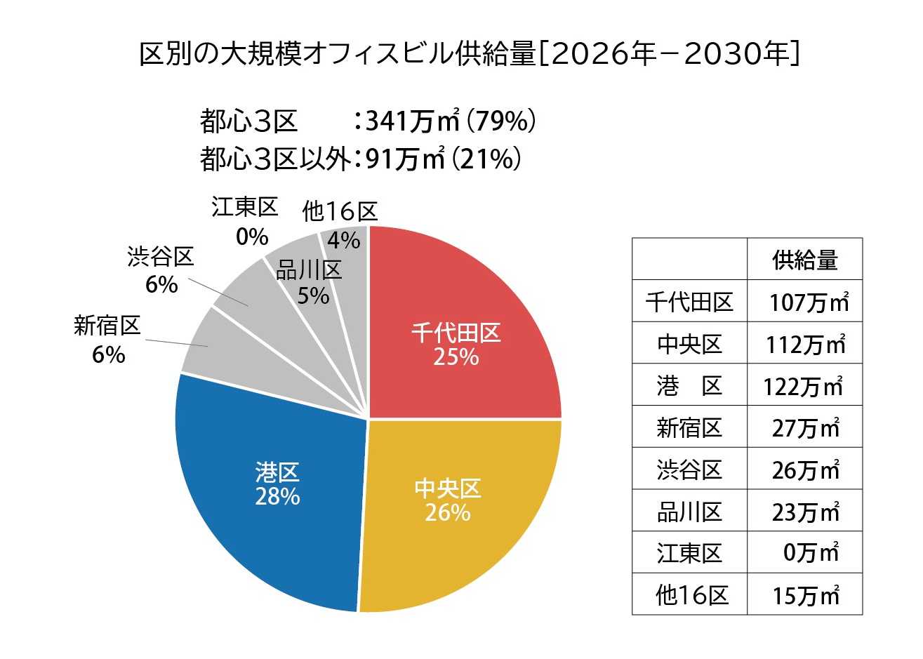 区別の大規模オフィスビル供給量[2026年-2030年]