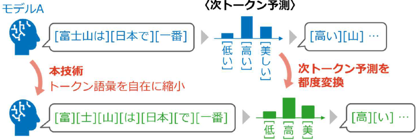 図1 LLM の出力傾向を保ったまま、トークン語彙を自在に縮小できる変換技術を確立